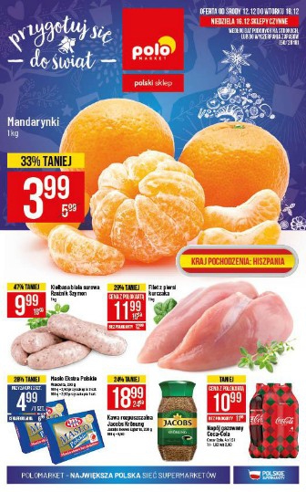 {loadposition linkPoloMarket} 'Przygotuj się do Świąt' - nowa gazetka promocyjna sieci sklepów Polo Market. Polecane promocje z gazetki Polo Market: Mandarynki 1 kg - 3,99 zł. Kiełbasa biała surowa Rzeźnik Szymon 1 kg - 9,99 zł. Filet z…
