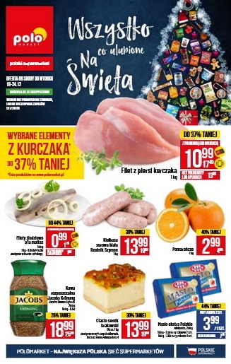'Wszystko co ulubione na święta' - nowa gazetka promocyjna sieci sklepów Polo Market. Polecane promocje z gazetki Polo Market: Filet z piersi kurczaka 1 kg - 10,99 zł*. Pomarańcze 1 kg - 2,99 zł. Kiełbasa surowa biała…