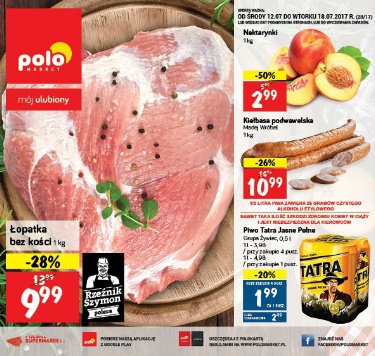 {loadposition linkPoloMarket} Nowa gazetka promocyjna Polo Market. Polecane promocje z gazetki Polo Market: Łopatka bez kości 1 kg - 9,99 zł. Nektarynki 1 kg - 2,99 zł. Kiełbasa podwawelska Madej Wróbel 1 kg - 10,99 zł.…