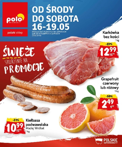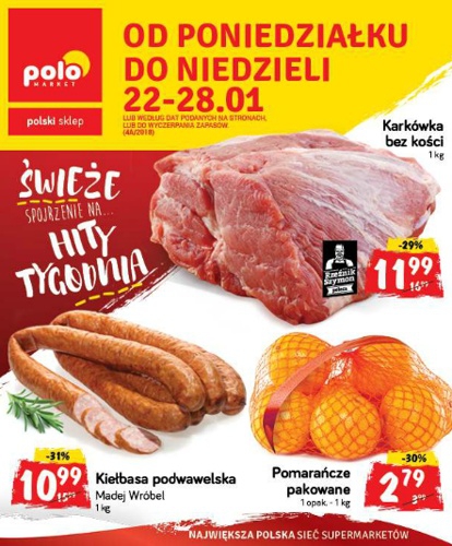 {loadposition linkPoloMarket} 'Świeże spojrzenie na... promocje' - nowa gazetka promocyjna sieci sklepów Polo Market. Polecane promocje z gazetki Polo Market: Karkówka bez kości 1 kg - 12,99 zł. Kiełbasa podwawelska Madej Wróbel 1 kg - 10,99 zł.…