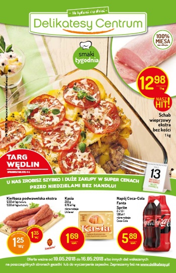 {loadposition linkDelikatesyCentrum} 'Targi wędlin' - nowa gazetka promocyjna Delikatesów Centrum. Polecane promocje z gazetki Delikatesów Centrum: Schab wieprzowy ekstra bez kości 1 kg - 12,98 zł. Kiełbasa podwawelska extra Sokołów 100 g - 1,25 zł*. Masło klarowane…