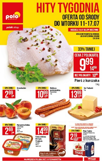 {loadposition linkPoloMarket} 'Hity tygodnia' - nowa gazetka promocyjna sieci sklepów Polo Market. Polecane promocje z gazetki Polo Market: Pierś z kurczaka 1 kg - 9,99 zł*. Brzoskwinie 1 kg - 2,99 zł. Kiełbasa podwawelska Madej Wróbel…