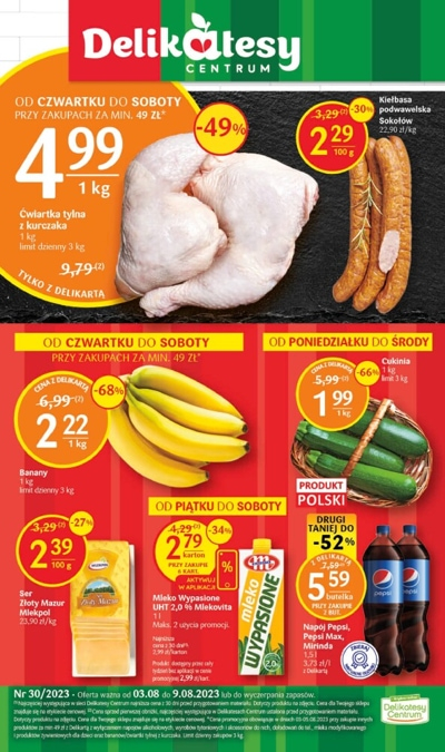 {loadposition linkDelikatesyCentrum} Nowa gazetka promocyjna Delikatesów Centrum. Polecane promocje z gazetki Delikatesów Centrum: Ćwiartka tylna z kurczaka 1 kg - 4,99 zł*. Kiełbasa Podwawelska Sokołów 100 g - 2,29 zł. Banany 1 kg - 2,22 zł*. * -…