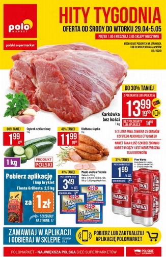 'Hity tygodnia' - nowa gazetka promocyjna sieci sklepów Polo Market. Polecane promocje z gazetki Polo Market: Karkówka bez kości 1 kg - 13,99 zł*. Ogórki szklarniowe 1 kg - 1,99 zł. Kiełbasa śląska 1 kg -…