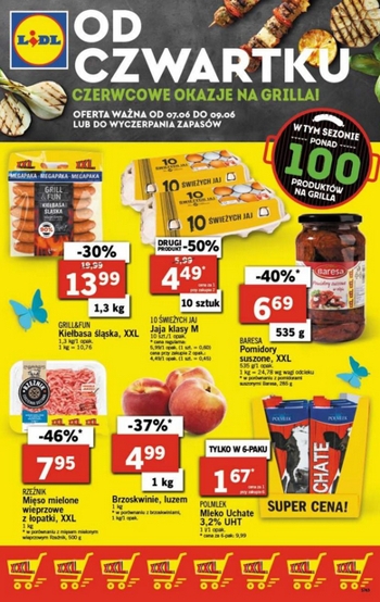{loadposition linkLidl2} 'Od czwartku czerwcowe okazje na grilla!' - nowa żółta gazetka promocyjna sieci sklepów Lidl. Polecane promocje z gazetki sklepów Lidl: Kiełbasa śląska XXL Grill&Fun 1,3 kg - 13,99 zł. Pomidory suszone XXL Baresa 535 g - 6,69…