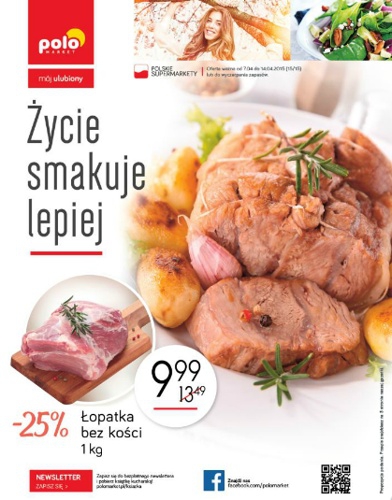 {loadposition linkPoloMarket} Nowa gazetka promocyjna Polo Market - "Życie smakuje lepiej". Polecane promocje z gazetki Polo Market: Łopatka bez kości 1 kg - 9,99 zł. Kiełbasa żywiecka Nove 1 kg - 9,99 zł. Filecik drobiowy opiekany Polonus 1 kg…