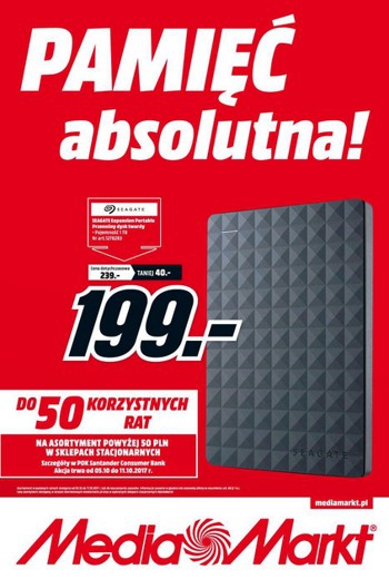 {loadposition linkMediaMarkt} Nowa gazetka promocyjna Media Markt - "Pamięć absolutna!". Polecane promocje z gazetki Media Markt: Dysk zewnętrzny SEAGATE Expansion 1 TB - 199 zł. Mysz przewodowa LOGITECH G203 Prodigy - 119 zł. Klawiatura USB RAZER BlackWidow X Chroma…