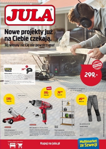 {loadposition linkJula} 'Nowe projekty już na Ciebie czekają. Tej wiosny nic Cię nie powstrzyma!' - nowa gazetka promocyjna sieci handlowej Jula. Polecane promocje z gazetki Jula: Pilarka stołowa Meec Tools 1500 W - 299 zł. Podnośnik garażowy…