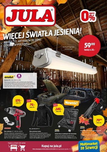 {loadposition linkJula} 'Więcej światła jesienią! Mamy 15 tys. artykułów do domu, ogrodu i wypoczynku' - nowa gazetka promocyjna sieci handlowej Jula. Polecane promocje z gazetki Jula: Oprawa LED Anslut 23 W - 59,99 zł. Klucz udarowy Hamron 450 W…