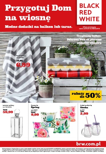 {loadposition linkBRW} 'Przygotuj dom na wiosnę. Modne dodatki na balkon lub taras' - nowa gazetka promocyjna sieci sklepów meblowych Black Red White. Polecane promocje z gazetki Black Red White: Koc polarowy 130x150 cm - 6,99 zł. Lampion…