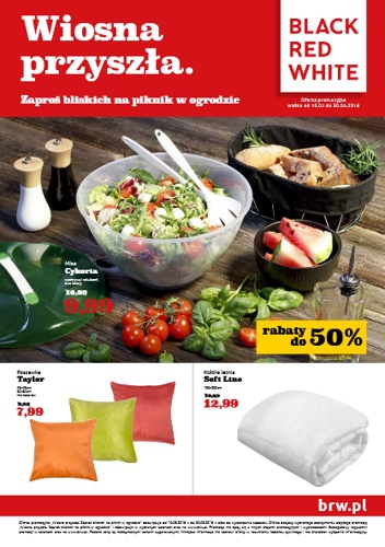 {loadposition linkBRW} 'Wiosna przyszła. Zaproś bliskich na piknik w ogrodzie' - nowa gazetka promocyjna sieci sklepów meblowych Black Red White. Polecane promocje z gazetki Black Red White: Misa Cykoria z pokrywą i sztućcami - 9,99 zł. Poszewka Taylor mix…