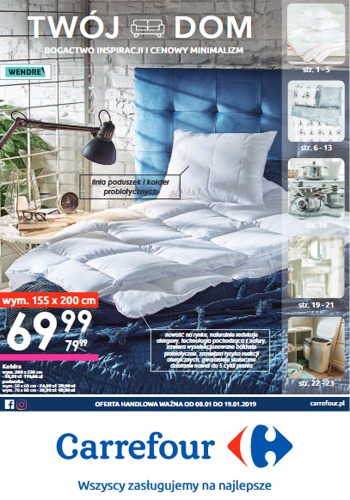 {loadposition linkCarrefour4} 'Stwórz wyśnione wnętrze' - nowa gazetka promocyjna sieci marketów Carrefour. Polecane promocje z gazetki Carrefour: Kołdra 155x200 cm - 149,99 zł. Poduszka biała 40x40 cm - 7,99 zł. Poszewka na poduszkę 40x40 cm - 4,99 zł. …