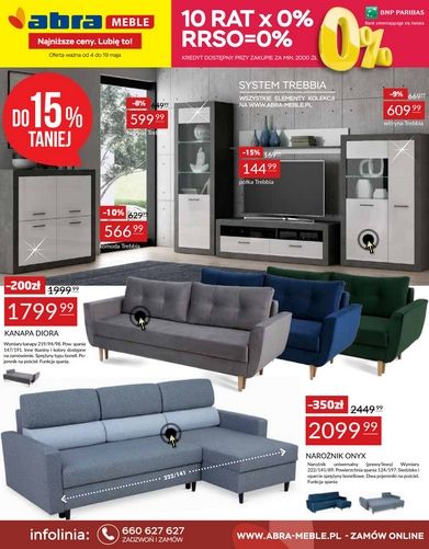 {loadposition linkAbra} 'Do 15% taniej' - nowa gazetka promocyjna sieci sklepów Abra Meble. Polecane promocje z gazetki Abra Meble: Komoda Trebbia - 566,99 zł. Kanapa Diora - 1799,99 zł. Narożnik Onyx - 2099 zł. Oferta ważna od…