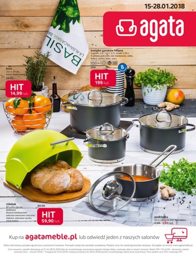 {loadposition linkAgata} Nowa gazetka promocyjna sieci salonów Agata z artykułami wyposażenia wnętrz. Polecane promocje z gazetki Agata: Komplet garnków Milano - 199 zł. Kosz chromowany - 14,99 zł. Chlebak - 59,90 zł. Oferta ważna od…