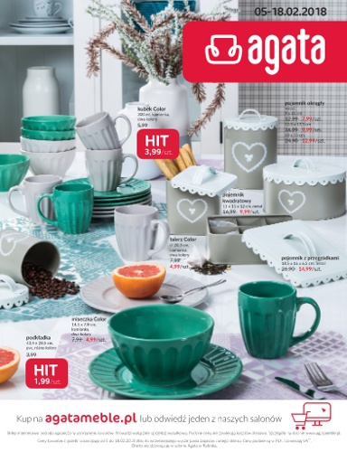 {loadposition linkAgata} Nowa gazetka promocyjna sieci salonów Agata z artykułami wyposażenia wnętrz. Polecane promocje z gazetki Agata: Serwis obiadowo-kawowy Victoria dla 6 osób - 229 zł. Komplet sztućców Prima Cucina 24 elementy - 39,90 zł. Komplet garnków Gerlach Viva…