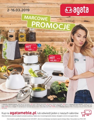 {loadposition linkAgata} 'Marcowe promocje' - nowa gazetka promocyjna sieci salonów Agata z artykułami wyposażenia wnętrz. Polecane promocje z gazetki Agata: Komplet garnków Milano - 149 zł. Chlebak - 49,90 zł. Zestaw obiadowy Alaska - 79,90 zł.…