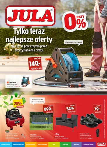 {loadposition linkJula3} 'Tylko teraz najlepsze oferty. Nic Cię nie powstrzyma przed skorzystaniem z okazji' - nowa gazetka promocyjna sieci handlowej Jula. Polecane promocje z gazetki Jula: Bęben na wąż 20 m Gardena - 149 zł*. Kompresor Meec Tools 6…