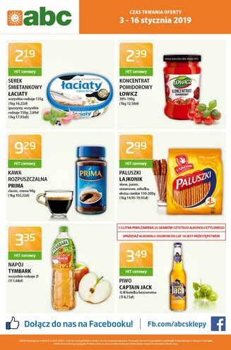 {loadposition linkABC} Nowa gazetka promocyjna sieci sklepów ABC. Polecane promocje z gazetki ABC: Serek śmietankowy Łaciaty 135 g - 2,19 zł. Koncentrat pomidorowy Łowicz 190 g - 2,39 zł. Kawa rozpuszczalna Prima 90 g - 9,29 zł. …