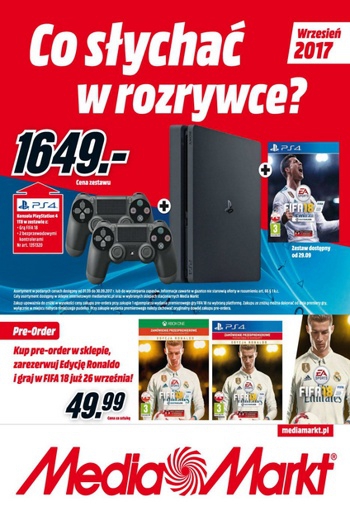 {loadposition linkMediaMarkt} Nowa gazetka promocyjna sieci sklepów Media Markt - "Co słychać w rozrywce?". Polecane promocje z gazetki Media Markt: Konsola PlayStation 4 1TB + gra FIFA 18 + 2 bezprzewodowe kontrolery - 1649 zł. Gra PC Star Wars…