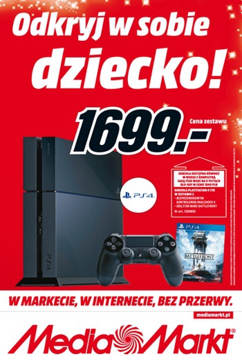 {loadposition linkMediaMarkt} Nowa gazetka promocyjna Media Markt - "Odkryj w sobie dziecko!". Polecane promocje z gazetki Media Markt: Konsola SONY PlayStation 4 1TB + Star Wars Battlefront - 1699 zł. Gra PC Karaoke MiniMini+ Vol. 2 + Mikrofon -…