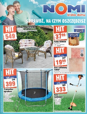 Nowa gazetka promocyjna Nomi - "Sprawdź, na czym oszczędzisz". Polecane promocje z gazetki Nomi: Zestaw mebli ATHENA - 549 zł. Trampolina ogrodowa - 399 zł. Kosa spalinowa - 333 zł. Oferta ważna od 22.05 do 4.06 lub…