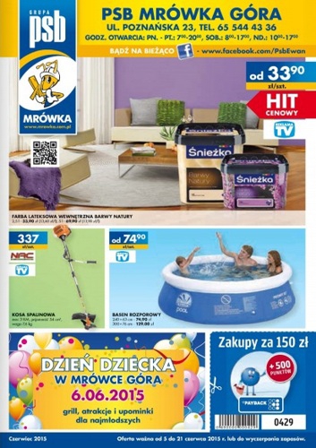 Nowa gazetka promocyjna PSB Mrówka. Polecane promocje z gazetki PSB Mrówka: Farba lateksowa wewnętrzna Śnieżka Barwy Natury 2,5 L - 33,90 zł. Kosa spalinowa NAC - 337 zł. Basen rozporowy - 74,90 zł. Oferta ważna od 5.06…