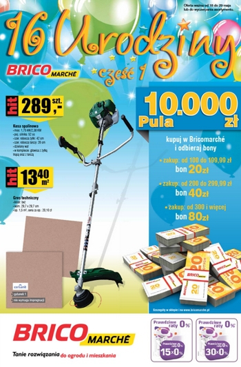 {loadposition linkBricomarche} Nowa gazetka promocyjna Bricomarche - "16 urodziny". Polecane promocje z gazetki Bricomarche: Kosa spalinowa - 289 zł. Gres techniczny m² - 13,40 zł. Żyrandol - 59,99 zł. Oferta ważna od 18.05 do 29.05 lub do wyczerpania…