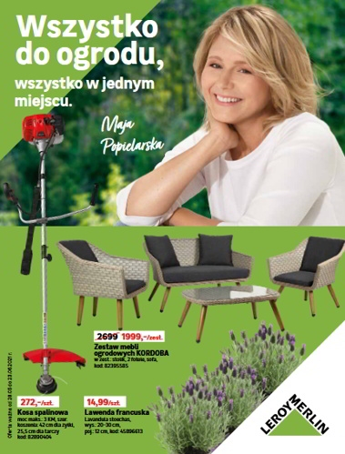 {loadposition linkLeroyMerlin} 'Wszystko do ogrodu, wszytsko w jednym miejscu' - nowa gazetka promocyjna Leroy Merlin. Polecane promocje z gazetki Leroy Merlin: Zestaw mebli ogrodowych Kordoba - 1999 zł. Kosa spalinowa - 272 zł. Lawenda francuska 1 sztuka - 14,99…