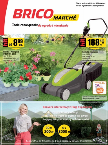 {loadposition linkBricomarche} Nowa gazetka promocyjna Bricomarche. Polecane promocje z gazetki Bricomarche: Kosiarka elektryczna - 188 zł. Pochodnia bambusowa - 2,99 zł. Grill węglowy okrągły - 13,99 zł. Oferta ważna od 20.04 do 30.04 lub do wyczerpania asortymentu.