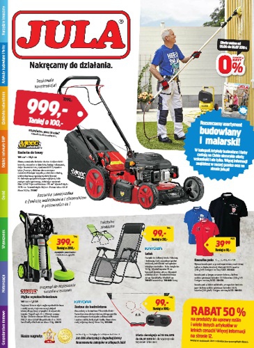 {loadposition linkJula} Nowa gazetka promocyjna sieci handlowej Jula. Polecane promocje z gazetki Jula: Kosiarka spalinowa Meec - 999 zł. Myjka wysokociśnieniowa Hamron - 399 zł. Leżak Kayoba - 99 zł. Oferta ważna od 19.06 do 5.07 lub do…