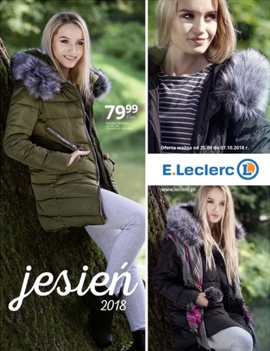 {loadposition linkEleclerc} 'Jesień 2018' - nowa gazetka promocyjna sieci handlowej E.Leclerc. Polecane promocje z gazetki E.Leclerc: Kurtka damska - 79,99 zł. Koszula damska - 39,99 zł. Spodnie damskie - 24,99 zł. Oferta ważna od 25.09…