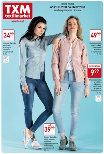 {loadposition linkTXM} Nowa gazetka promocyjna sieci sklepów Textil Market. Polecane promocje z gazetki Textil Market: Koszula damska jeansowa - 34,99 zł. Kurtka damska typu bomber - 49,99 zł. Bluzka damska z krótkim rękawem - 9,99 zł. Oferta…