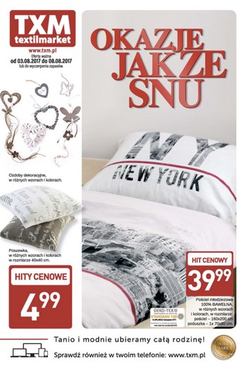 {loadposition linkTXM} Nowa gazetka promocyjna sieci sklepów Textil Market. Polecane promocje z gazetki Textil Market: Koszula nocna - 19,99 zł. Koszulka damska z nadrukiem - 14,99 zł. Koszulka damska z napisem - 19,99 zł. Oferta ważna od…