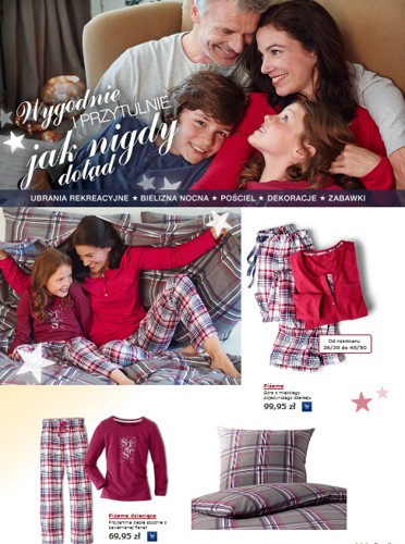 Nowa oferta Tchibo - "Ubrania rekreacyjne dla całej rodziny". Polecane promocje z gazetki Tchibo: Piżama - 89,95 zł. Koszula nocna - 69,95 zł. Sweter rozpinany - 199,95 zł. Oferta ważna do wyczerpania zapasów.