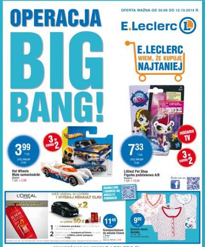 {loadposition linkEleclerc} Nowa gazetka promocyjna marketu E.Leclerc - "Big Bang!". Polecane promocje z gazetki E.Leclerc: Herbata ekspresowa Lipton 100 g - 7,85 zł. Hot Wheels Małe samochodziki 3 sztuki - 11,99 zł. Koszula nocna damska - 9,99 zł. …