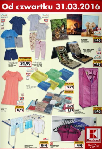 {loadposition linkKaufland} Nowa gazetka promocyjna marketu Kaufland. Polecane promocje z gazetki Kaufland: Piżama damska lub męska - 24,99 zł. Koszula nocna damska - 19,99 zł. Suszarka na pranie - 79,99 zł. Oferta ważna od 31.03 do wyczerpania zapasów.