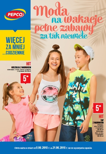 {loadposition linkPepco} 'Moda na wakacje pełne zabawy za tak niewiele' - nowa gazetka promocyjna sieci sklepów Pepco. Polecane promocje z gazetki Pepco: Koszulka dziewczęca z nadrukiem - 5,99 zł. Top chłopięcy z nadrukiem - 5,99 zł. …