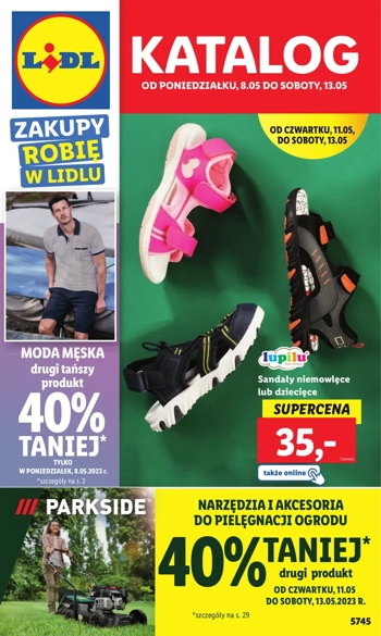{loadposition linkLidl3} 'Katalog' - nowa gazetka promocyjna sieci sklepów Lidl. Polecane promocje z gazetki sklepów Lidl: Akumulatorowa podkaszarka do trawy Parkside 20 V - 169 zł*. Huśtawka bocianie gniazdo Playtive ø113 - 159 zł**. Koszulka męska polo z bawełny…