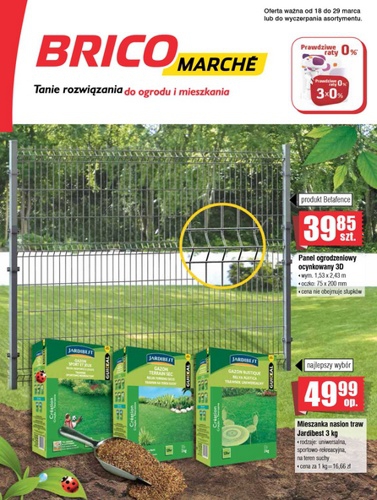 {loadposition linkBricomarche} Nowa gazetka promocyjna Bricomarche. Polecane promocje z gazetki Bricomarche: Panel ogrodzeniowy ocynkowany 3D 1,53x2,43 m - 39,85 zł. Mieszanka nasion traw Jardibest 3 kg - 49,99 zł. Koszyk wielkanocny - 3,99 zł. Oferta ważna od 18.03…