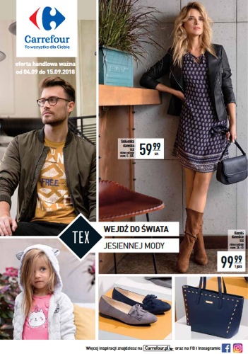 {loadposition linkCarrefour} 'TEX - wejdź do świata jesiennej mody' - nowa gazetka promocyjna sieci marketów Carrefour. Polecane promocje z gazetki Carrefour: Sukienka damska TEX - 59,99 zł. Kozaki damskie TEX - 99,99 zł. Kurtka puchowa damska…