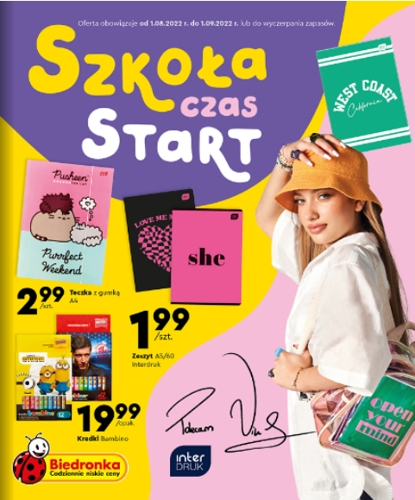 {loadposition linkBiedronka4} 'Szkoła czas start' - nowa gazetka promocyjna sieci sklepów Biedronka. Polecane promocje z gazetki sieci Biedronka: Teczka z gumką A4 - 2,99 zł. Zeszyt A5 60 kartek - 1,99 zł. Kredki Bambino - 19,99 zł. …