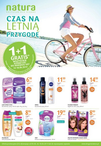 {loadposition linkNatura} Nowa gazetka promocyjna Drogerii Natura - "Czas na letnią przygodę". Polecane promocje z gazetki Drogerii Natura: Dezodorant Lady Speed Stick - 6,99 zł. Żel pod prysznic Palmolive 500 ml - 8,99 zł. Krem do depilacji pod prysznic…