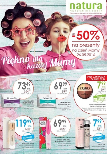 {loadposition linkNatura} Nowa gazetka promocyjna Drogerii Natura - "Piękno dla każdej Mamy". Polecane promocje z gazetki Drogerii Natura: Krem do twarzy na dzień Dr Irena Eris Telomeric 60+ 50 ml - 73,49 zł. Krem przeciwzmarszczkowy Dr Irena Eris Algorithm…