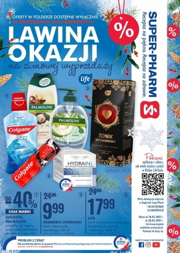 'Lawina okazji na zimowej wyprzedaży' - nowa gazetka promocyjna Super-Pharm. Polecane promocje z gazetki Super-Pharm: Krem intensywnie nawilżający Dermedic Hydrain 2 - 9,99 zł. Tonik witaminowy wspierający koncentrację, pamięć i witalność Life 1000 ml - 17,99 zł. Płyn do…