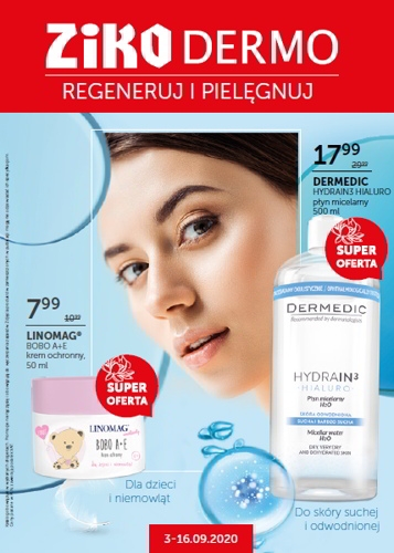 'Regeneruj i pielęgnuj' - nowa gazetka promocyjna drogerii Ziko Dermo. Polecane promocje z gazetki Ziko Dermo: Krem ochronny Linomag Bobo A+E 50 ml - 7,99 zł. Płyn micelarny Dermedic Hydrain 3 Hialuro 500 ml - 17,99 zł. Odświeżający żel…