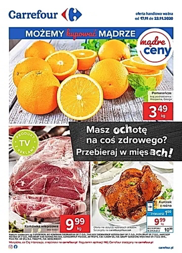 {loadposition linkCarrefour4} 'Możemy kupować mądrze' - nowa gazetka promocyjna sieci marketów Carrefour. Polecane promocje z gazetki Carrefour: Pomarańcze 1 kg - 3,49 zł. Karkówka wieprzowa bez kości 1 kg - 9,99 zł. Kurczak z rożna 1 kg - 9,99…