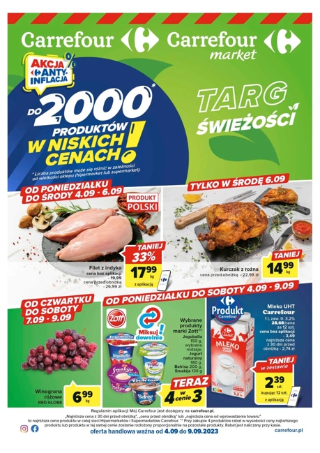{loadposition linkCarrefour} 'Do 2000 produktów w niskich cenach!' - nowa gazetka promocyjna sieci marketów Carrefour. Polecane promocje z gazetki Carrefour: Filet z indyka 1 kg - 17,99 zł*. Kurczak z rożna 1 kg - 14,99 zł**. Winogrono różowe Red…
