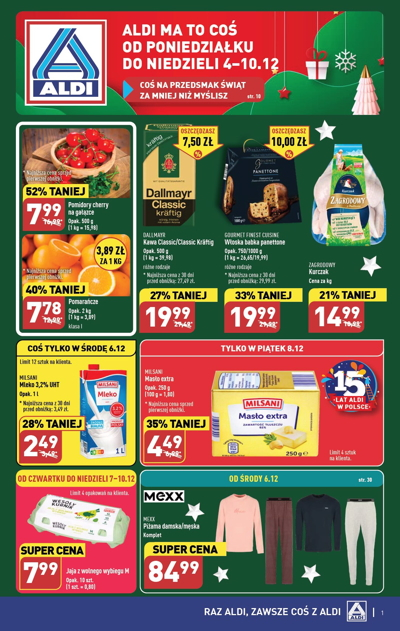 {loadposition linkAldi} 'Coś na przedsmak świąt za mniej niż myślisz' - nowa gazetka promocyjna sieci sklepów Aldi. Polecane promocje z gazetki Aldi: Kawa mielona Dallmayr 500 g - 19,99 zł. Włoska babka panettone Gourmet Finest Cusine 750/1000 ga -…
