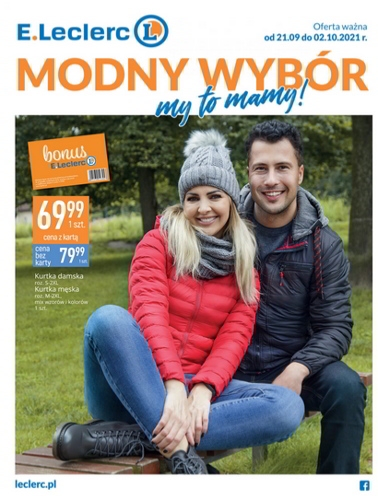 {loadposition linkEleclerc} 'Modny wybór my to mamy!' - nowa gazetka promocyjna sieci handlowej E.Leclerc. Polecane promocje z gazetki E.Leclerc: Spodnie damskie - 39,99 zł. Koszula męska - 22,99 zł*. Kurtka damska - 89,99 zł*. * - cena z…