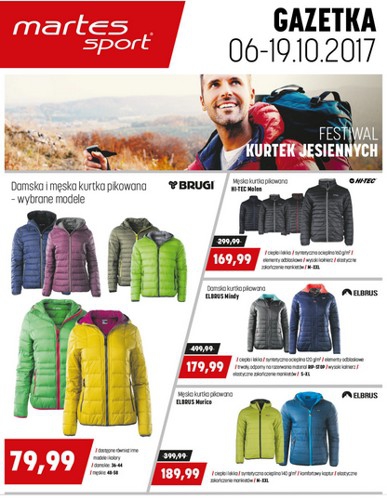 {loadposition linkMartesSport} Nowa gazetka promocyjna sieci sklepów Martes Sport - "Festiwal kurtek jesiennych". Polecane promocje z gazetki Martes Sport: Kurtka pikowana damska lub męska Brugi - 79,99 zł. Kurtka pikowana damska Elbrus - 179,99 zł. Kurtka pikowana męska Elbrus…